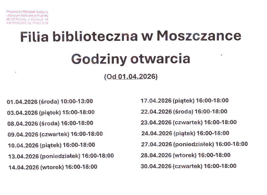 Godziny otwarcia w kwietniu dostępne są tutaj: Moszczanka_Kwiecien.png